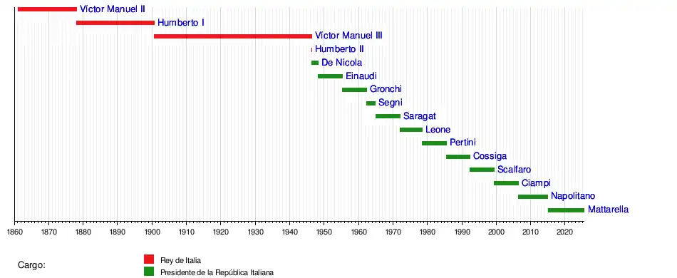 Esta posición fue ocupada de 1861 a 1946 por el Rey y de ese año hasta la actualidad ha sido ocupada por el presidente.