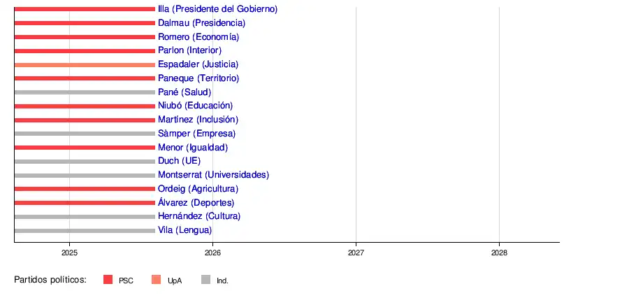 - ↑ «Illa se rodea de fieles del PSC para el nuevo Govern y ficha en el espacio 'convergente': Paneque será la portavoz, Miquel Sàmper a Empresa y Espadaler a Justicia». ELMUNDO. 11 de agosto de 2024. Consultado el 12 de agosto de 2024.