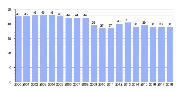 | Gráfica de evolución demográfica de Goiáns entre 2000 y 2018 |
