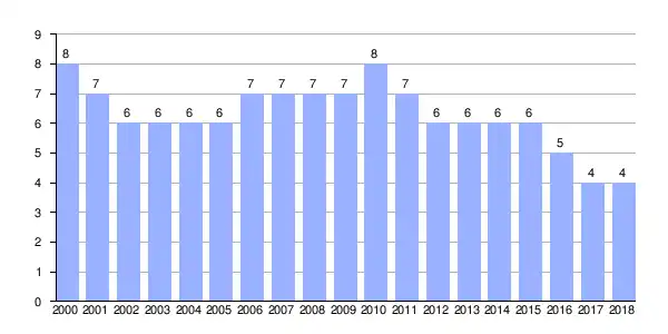 | Gráfica de evolución demográfica de Gomil entre 2000 y 2018 |