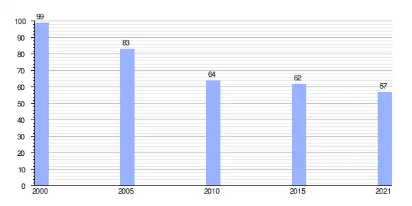 | Gráfica de evolución demográfica de Gondaísque entre 2000 y 2021 |