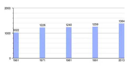 Hasta 2013 la población era de 1384 habitantes,[4] con una densidad de población de 153,1 hab/km².[4]