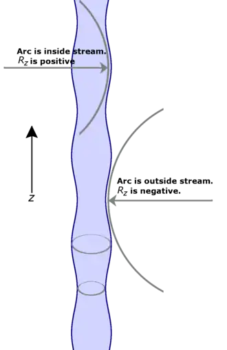 El efecto de la sustancia disuelta tiene en contra otro que es el de curvatura. Cuando las gotas son pequeñas la tensión superficial es apreciable y la "piel" de una gota se comporta como si fuera una membrana estirada, por lo tanto, es necesario hacer un trabajo para estirarla más; es decir que se opondrá al depósito de nuevas moléculas de vapor mientras la presión de vapor no sea más grande que la de saturación correspondiente a una superficie plana de agua. Es decir, necesita humedad relativa superior al 100 %, comentado anteriormente. A medida que la gota crece, el efecto de curvatura disminuye y tiende a anularse. A partir de los 2 o 3 micrones de radio, la gota se comporta como si tuviera superficie plana.