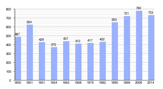 | Gráfica de evolución demográfica de Gréville-Hague entre 1800 y 2014 |