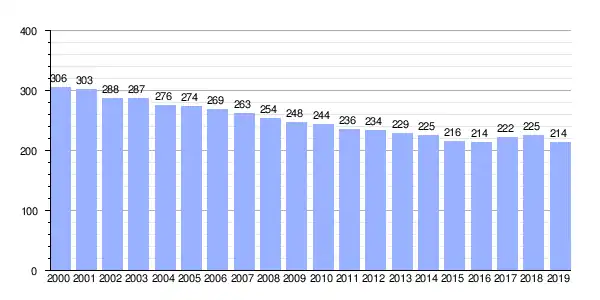 | Gráfica de evolución demográfica de Graña entre 2000 y 2019 |