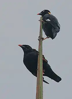 - ↑ BirdLife International (2012). «Gracula ptilogenys». Lista Roja de especies amenazadas de la UICN 2012.1 (en inglés). ISSN 2307-8235. Consultado el 16 de julio de 2012.