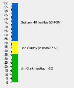 | Ret | 6 | Dan Gurney | Brabham-Climax | 62 | Caja | 5 | |