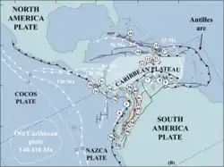 - ↑ Kaj Hoernle, Folkmar Hauff and Paul van den Bogaard, 70 m.y. history (139–69 Ma) for the Caribbean large igneous province, Geology; August 2004; v. 32; no. 8; p. 697-700 Abstract