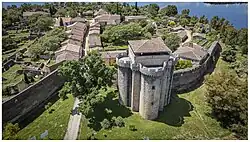 El elemento más significativo de la fortificación es el castillo, que fue mandado construir por García Álvarez de Toledo y Carrillo de Toledo, duque de Alba, entre 1473 y 1478. Sus artífices fueron Juan Carrera y Tomás Bretón. Consta de un cuerpo prismático central y cuatro cuerpos semicilíndricos que se adosan a cada costado.