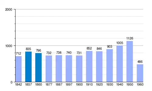 | Gráfica de evolución demográfica de Granadilla[8] entre 1842 y 1960 |