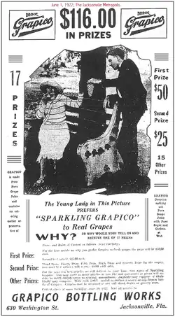 - ↑ a b c d Anuncio de Grapico Bottling Works en The Jacksonville Metropolis (1 de junio de 1922) . Consultado el 21 de julio de 2008.