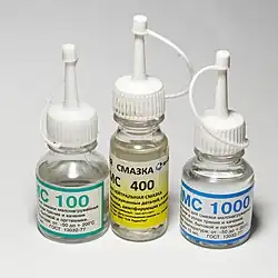 - ↑ Haiduc, I., "Silicone Grease: A Serendipitous Reagent for the Synthesis of Exotic Molecular and Supramolecular Compounds", Organometallics 2004, volume 23, pp. 3-8. doi 10.1021/om034176w