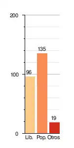 Partido Popular (60) Partido de la Libre Opinión (52) Otros antivenicelistas (15) Unión de Liberales (108) Partido Agrario-laborista (17) Otros venicelistas (18) Partido Agrario (4) Partido Comunista (10) Otros (2) |