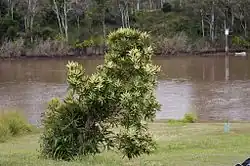 - ↑ «Grevillea baileyana McGill.». Australian Plant Name Index (APNI), IBIS database. Centre for Plant Biodiversity Research, Australian Government.