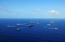 | Unidades | Buques de guerra del CARSTRKGRU 7 | Ala Aérea Embarcada Catorce (CVW-14), escuadrones embarcados a bordo del buque insignia USS Ronald Reagan (CVN-76) | |