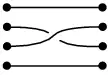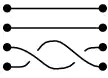 Consideremos dos conjuntos cada uno de cuatro objetos situados en una mesa. Dibujaremos los objetos de cada conjunto alineados verticalmente. Usando cuatro hebras, cada objeto del primer conjunto quedará conectado con un objeto del segundo. Llamaremos trenza a un conjunto de estas cuatro conexiones.