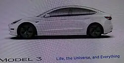 En los vehículos Tesla si se intenta cambiar el nombre del coche a «42» se activa el huevo de Pascua de la Guía del autoestopista galáctico.[14][15][16] El nombre del coche cambia a «Life, the Universe, and Everything» (La vida, el universo y todo). En el libro Guía del autoestopista galáctico se le pregunta al superordenador Pensamiento Profundo cuál es el significado de la vida y tras 7.5 millones de años responde: «42».