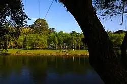 Orillas del Rio Santa Barbara - Orillas del Río Santa Bárbara: El río Santa Bárbara en Gualaceo es un atractivo natural rodeado de abundante vegetación y senderos de 2,5 km ideales para caminar y relajarse. Su amplio llano permite acampar o descansar, y cuenta con puentes colgantes, cabañas, asaderos públicos y juegos infantiles. Además, se pueden realizar actividades como paseos a caballo y viajes en botes de remo. Durante el verano, el nivel del agua baja, permitiendo a los visitantes saltar entre las piedras del río.[19]