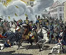 El 25 de julio de 1830, la publicación por Carlos X de las Ordenanzas de Julio, destinadas a reforzar su poder limitando el del pueblo, provocaron la revuelta popular conocida como Revolución de Julio o las Tres Gloriosas que acabaron con su reinado. El 29 de julio, la Guardia Nacional fue restablecida y el anciano general La Fayette fue nombrado a su mando. El 31 de julio, el Duque de Orleans, a punto de ser proclamado rey de los franceses, llegó vestido con el uniforme de la Guardia Nacional al Ayuntamiento de París donde le esperaba La Fayette, y declaró: "Señores, ¡soy un antiguo guardia nacional que visita a su antiguo general!" El mismo día pasó revista a los guardias nacionales parisinos allí reunidos declarando: "Para mí, esto vale más que el sacro en Reims."