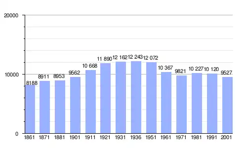 | Gráfica de evolución demográfica de Guardiagrele entre 1861 y 2001 |