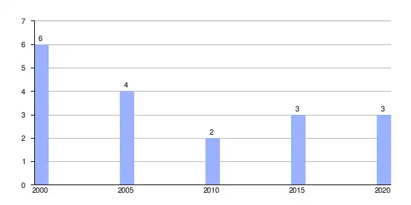 | Gráfica de evolución demográfica de Guariz entre 2000 y 2020 |