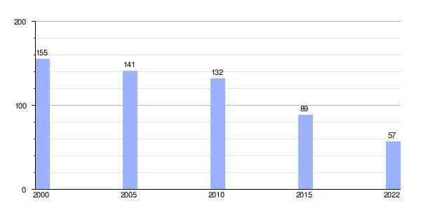 | Gráfica de evolución demográfica de Gudín entre 2000 y 2022 |