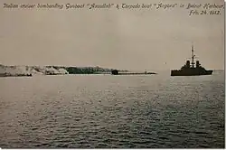 La primera acción italiana fue el bloqueo naval de las dos provincias libias, desde la frontera tunecina a la egipcia, en la que participaron siete acorazados y otro buques menores, que repostaban en Augusta.[31]