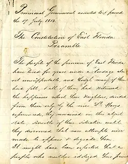 - ↑ «"Patriot Constitution" of the Republic of East Florida, 1812». Florida Memory. Florida Department of State. Consultado el 16 de mayo de 2022.
