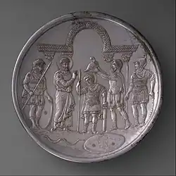 En el 608, el general Heraclio, exarca de África, se amotinó instigado por el también general Prisco, conde de los excubitores y yerno de Focas.[23]​ Heraclio se proclamó cónsul junto con su hijo y tocayo, lo que suponía reclamar implícitamente el título de emperador, y comenzó a acuñar moneda con la imagen de ambos con indumentaria consular.[24]