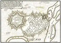 - ↑ La fortificación de Casal y de otras poblaciones del Monferrato se debió en parte al deseo de prevenir la conquista del ducado por parte de españoles, saboyanos y franceses y en parte para facilitar el sometimiento de estas tierras a Mantuas, pues el rapaz gobierno de los Gonzaga no gozaba de las simpatías de la población.[13]