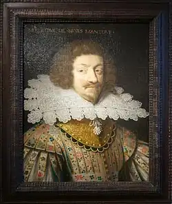 El 22 de diciembre de 1612, el duque Francisco IV,[nota 3] de Mantua y de Monferrato (como Francisco II de Monferrato) murió a la edad de 26 años.[2] Su muerte ocurrió sólo seis meses después de la de su padre Vicente I Gonzaga, acontecida en junio,[16] y de la su propio hijo, Luis, fallecido como él de viruela.[2] Dejó solamente una hija, María,[17] que entonces contaba con tres años de edad y que quedó excluida de la sucesión por su condición de mujer.[9][2][16] Francisco IV también tenía dos hermanos pequeños, Fernando, por entonces cardenal, y Vicente.[9][2] Los dos hermanos se disputaron la herencia, que obtuvo finalmente el mayor, Fernando, mientras que el menor obtenía el cargo de cardenal que había dejado vacante su hermano al ascender al trono ducal.[10]
