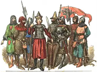 Desde principios del siglo XV, la Corona polaca empezó a contratar mercenarios, que solían luchar bajo la bandera de San Jorge (especialmente mercenarios bohemios (checos)). La bandera era una cruz roja sobre blanco, o una cruz blanca sobre rojo; esta última sólo se utilizaba cuando dos unidades bohemias se encontraban en lados opuestos de un campo de batalla y debían diferenciarse. El concepto de tabor, aprendido de los bohemios, era una táctica importante.