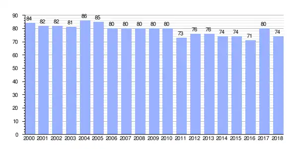 | Gráfica de evolución demográfica de Gundín entre 2000 y 2018 |