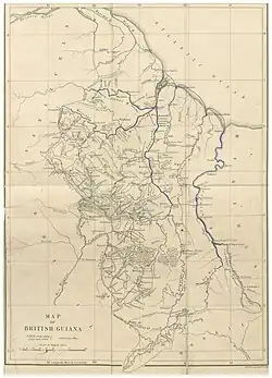 En 1796, prácticamente la mitad de la Guayana Neerlandesa fue tomada por los ingleses. Las colonias de Esequibo, Demerara, y Barbiezos fueron cedidas oficialmente al Reino Unido en el Tratado Anglo-Neerlandés de 1814[25][26][27] y en el Congreso de Viena en 1815. En 1831 se consolidaron como Guayana Británica. Los esclavos que escapaban de las plantaciones se iban a vivir a las selvas con los lugareños. El mestizaje racial y cultural dio origen a los denominados cimarrones. A estos grupos se sumaron los chinos, javaneses e indios, traídos por los ingleses como mano de obra barata. Los ideales independentistas lograron canalizarse a partir de 1950 con el Partido Popular Progresista (PPP); un programa de independencia nacional y de mejoras sociales, y a largo plazo, de transformación socialista de la sociedad. El plan fue llevado a cabo por Cheddi Jagan por tres períodos sucesivos en el cargo de primer ministro (1953-1961).