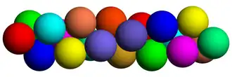 ![]() Los bordes se pueden colorear en 6 grupos, 3 hélices principales (cian), con los bordes cóncavos formando hélices lentas hacia adelante (magenta) y dos hélices hacia atrás (amarillo y naranja) |