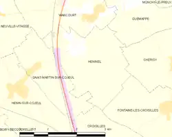 - ↑ INSEE, Datos de población para el año 2012 de Héninel (en francés).