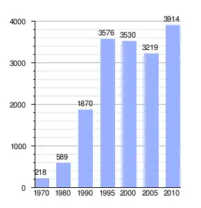 | Gráfica de evolución demográfica de Hércules entre 1970 y 2010 |