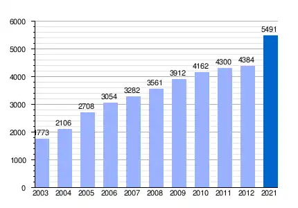 | Gráfica de evolución demográfica de Híjar entre 2003 y 2021 |