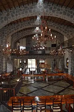 Hay tres edificios principales, una casa principal, una capilla y dormitorios. La casa principal tiene un gran comedor, clases y salas de reuniones, biblioteca, una sala de juegos y más. La capilla tiene el diseño tradicional de hacienda, pero es mucho más grande, con un espacio para albergar reuniones de hasta 300 personas. Los dormitorios están al lado de estos edificios y albergan hasta 500 estudiantes.[1][3]