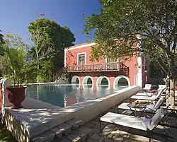 Nueva vida. La hacienda Santa Rosa de Lima fue habilitada para cumplir funciones del todo ajenas a su pasada existencia, pero conservando la espléndida atmósfera de la época de auge del "oro verde", como se llamó a la fibra del henequén cuando esta llevó a los hacendados a la cumbre del éxito económico. La restauración fue realizada en 1996 por el arquitecto Luis Bosoms [cita requerida].