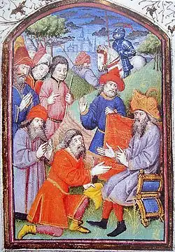 ![]() Detalle de Hethum en una reunión, con los mongoles (1254) ("Histoire des Tartars", Hayton de Coricos, 1307) | ||