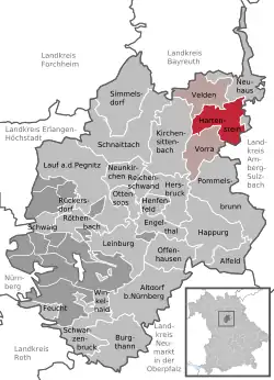 Se encuentra ubicado en la zona centro-norte del estado, en la región de Franconia Media, a poca distancia de la ciudad de Núremberg y del río Pegnitz —un afluente del río Meno que a su vez, lo es del Rin—.