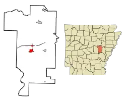 ![]() Localización en el condado de Prairie y en el estado de Arkansas | ||