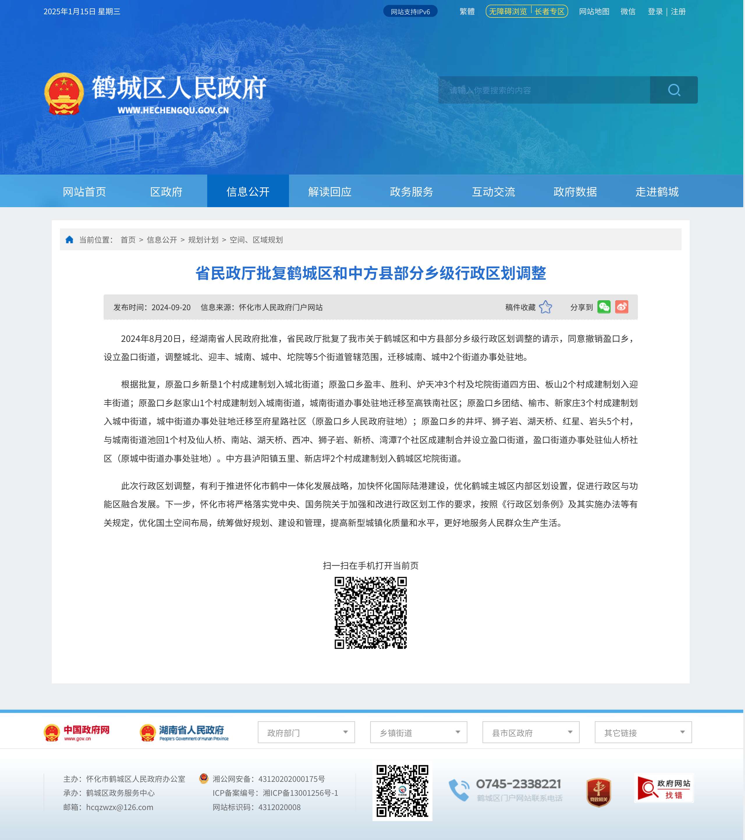 Es el único distrito en Huaihua desde que en septiembre de 2022, Hongjian perdió la categoría y fue degradado a municipio.[3]