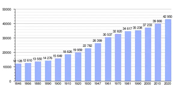 Todos los datos históricos relativos al actual municipio, el siguiente gráfico refleja su evolución demográfica, incluyendo municipios después de efectuada la fusión el 1 de enero de 1977.