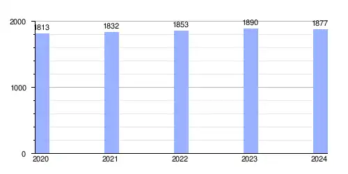Hasta 2024 la población era de 1877 habitantes,[2] con una densidad de población de 100,26 hab/km².[2]