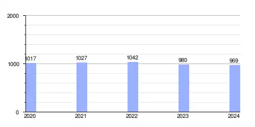 Hasta 2024 la población era de 969 habitantes,[2] con una densidad de población de 94,26 hab/km².[2]