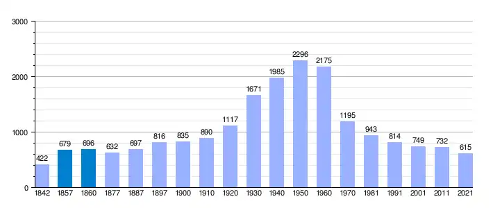 | Gráfica de evolución demográfica de Helechosa de los Montes[5] entre 1842 y 2021 |