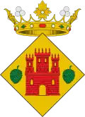 «De gules, un perro pasante de oro acompañado al jefe de un cardo de 3 flores de oro. Por timbre una corona mural de villa.» Aprobado el 15 de noviembre de 1991.[41] El perro, es el señal parlante tradicional que hace referencia al nombre de la población. El cardo de oro sobre camper de gules proviene de las armas parlantes de los condes de Cardona, señores de la villa. |
