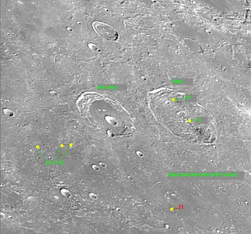 Por convención estos elementos se identifican en los mapas lunares colocando la letra en el lado del punto medio del cráter que está más cercano a Hercules.